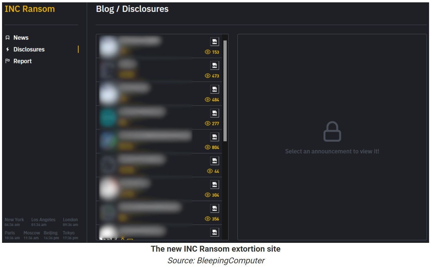 Sinobi’s story begins in mid-2023 when a threat actor known as INC ransomware emerged from apparently nowhere. INC is thought to be an original group with no lineage to other threat actors. It operated as a ransomware-as-a-service group until May 2024 when it was offered for sale on underground forums.