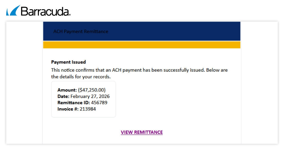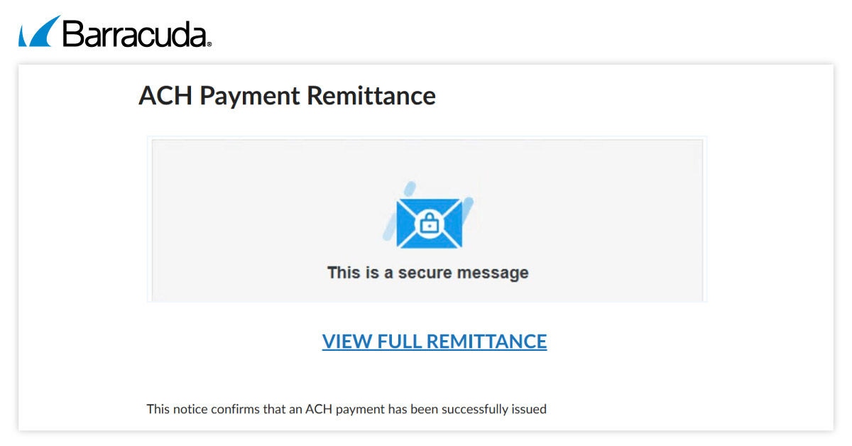 The attack begins with the attacker taking control of an existing email conversation thread. Within this trusted context, the attacker sends a message saying that an ACH payment has been issued and needs to be reviewed.