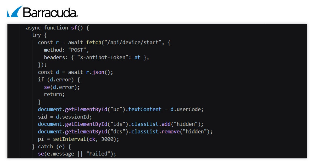 - In the last four weeks, Barracuda has detected more than 7 million device code attacks.